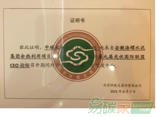 在日前召開(kāi)的第九屆光伏國(guó)際聯(lián)盟CEO論壇勝利閉幕,中碳未來(lái)(北京)資產(chǎn)管理公司向論壇捐贈(zèng)55噸碳排放總量,本次大會(huì)成功實(shí)現(xiàn)碳中和 。