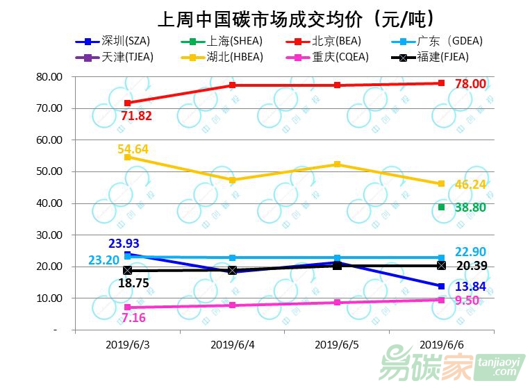 ccer市場:2019年6月3日-6月6日,各CCER市場中,上海表現(xiàn)最為活躍,共計(jì)成交63.8萬噸;廣東次之,共計(jì)成交52.6萬噸;