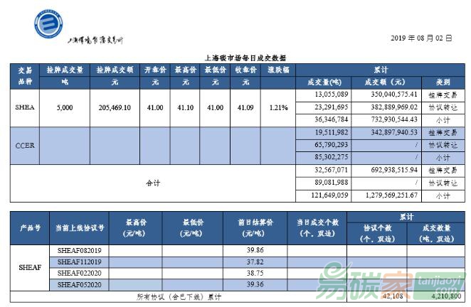 ccer協(xié)議轉(zhuǎn)讓成交280,311噸。
