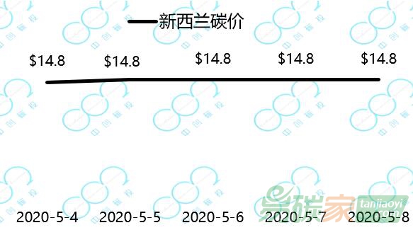 2020年5月4日至2020年5月8日,新西蘭碳價穩(wěn)定在14.8美元每噸。