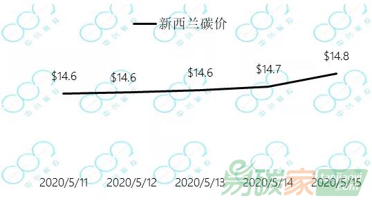 2020年5月11日至2020年5月15日,新西蘭碳價(jià)小幅上漲至14.8美元每噸。