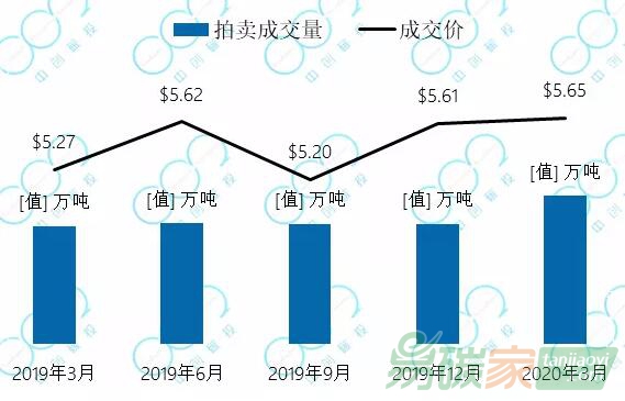 今年第1次拍賣于2月舉行,拍賣配額現(xiàn)貨5709萬噸全部成交,成交價(jià)17.87美元每噸;拍賣2023年生效的配額867萬噸全部成交,成交價(jià)18.00美元每噸。成交均價(jià)較去年同期上漲14%。