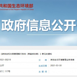關(guān)于公開征求《碳排放權(quán)交易管理暫行條例(草案修改稿)》意見的通知 為貫徹落實(shí)習(xí)近平總書記關(guān)于應(yīng)對(duì)氣候變化重要講話精神和黨中央、國務(wù)院關(guān)于全國碳排放權(quán)交易市場(chǎng)建設(shè)的決策部署,充分發(fā)揮市場(chǎng)機(jī)制作用,推動(dòng) ... ...