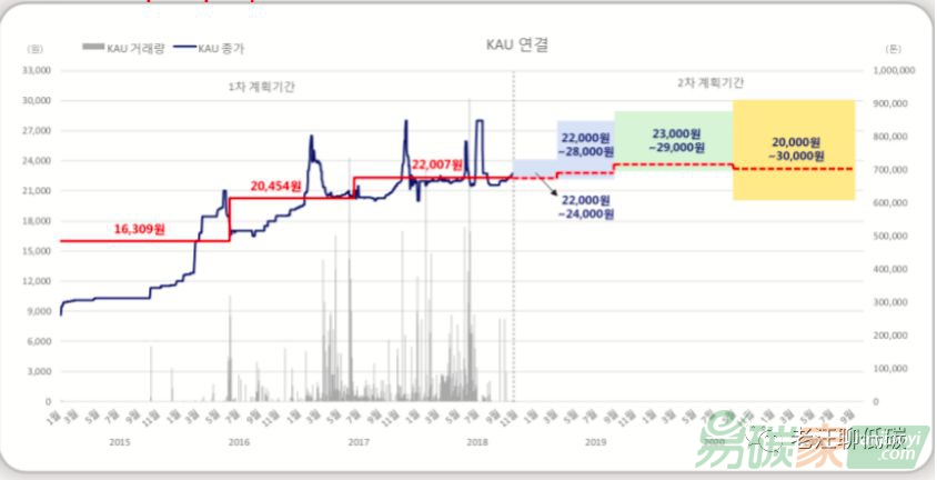 記得前幾天一篇關(guān)于韓國(guó)碳市場(chǎng)的文章,里面有一張圖是關(guān)于韓國(guó)碳價(jià)預(yù)測(cè)的如下: 這張圖是韓國(guó)某著名機(jī)構(gòu)在去年12月作出的預(yù)測(cè)圖,圖中可以看出,他們對(duì)2019年碳價(jià)的預(yù)測(cè)區(qū)間在22000~28000之間。也就是說,他們理想 ... ...